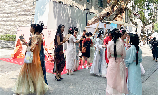 作为祠堂街开街前奏,“6.18”活动当天,不仅有国风市集贯穿整条街区,同时现场设置了沐香礼、画扇面、编彩绳、钓粽子、飞花令等游园项目,吸引了上百名汉服爱好者穿梭来往,也聚集了周边市民、外地游客前来打卡消费。