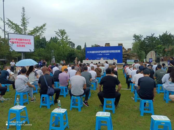 四川新闻网-首屏新闻成都6月20日讯 为进一步强化有限空间作业安全,扎实筑牢辖区农村安全生产防线,提高事故应急响应和处置能力。6月20日,和盛镇在紫薇公园承办2023年成都市农村沼气池有限空间作业事故应急演练。镇平安建设办、乡村振兴科、陈家渡村安全员及居民参加演练。