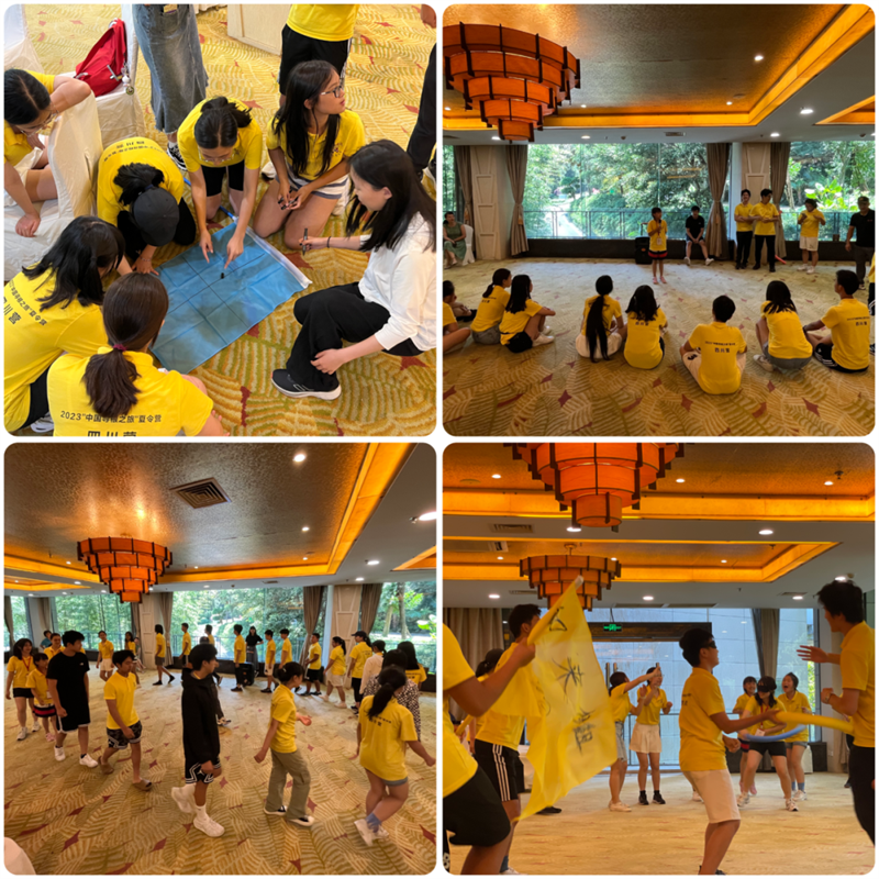 在辛苦的农耕体验后,营员们开展了一场别开生面的室内趣味运动会,营员们先后游玩了桃花朵朵开、钉子游戏、华山论剑、合力筑塔等游戏,在欢声笑语和竞技的碰撞里收获了友谊,在游戏和运动中获得了成长,在看似简单的游戏里,营员们展现了他们的拼搏精神,更是在游戏中明白了团队合作的力量和意义。(图由宜宾市委统战部提供)