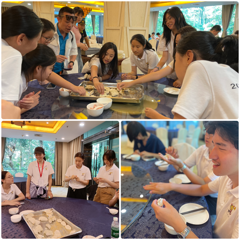 在观赏完竹景后,营员们迎来了一节别开生面的中华美食手工课——亲手制作饺子,为了让营员们更好地了解饺子这种传统食品,志愿者们详细地为营员们介绍了饺子的历史起源、民俗和象征意义,在饺子故事的感染下,营员们迅速围在师傅的周围开始学习包饺子,不少营员表示在动手制作饺子的过程中更加深入地了解了这种中华传统文化。