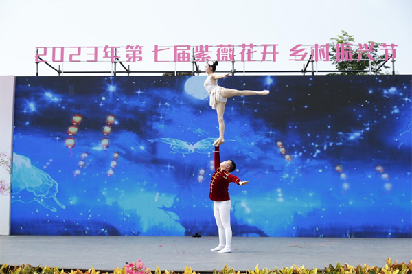 在开幕式现场,宣传片《品质到烟火 温江金马河》集中展现了近年来温江区和盛镇乡村振兴成果。主持人以视频配合旁白的方式推介了和盛亲水项目,生动展示了水韵和盛的休闲农业和乡村旅游产业资源。在表演环节,舞蹈《归去来兮》、杂技《肩上的芭蕾》、快板《妈妈的歌》、《紫薇花开》等文艺节目一一上演,让现场观众大饱眼福。