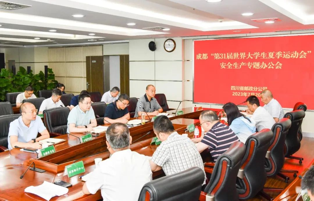 四川新闻网-首屏新闻成都7月20日讯 7月20日上午,四川省邮政分公司召开成都“第31届世界大学生夏季运动会”安全生产专题办公会暨安全生产委员会扩大会议,省分公司副总经理、成都大运会寄递渠道安全服务保障工作领导小组副组长万立、李业川出席会议,对大运会安全生产工作进行了再部署、再强调、再落实。