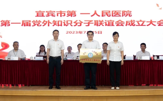 四川新闻网-首屏新闻成都7月27日讯 7月25日,宜宾市第一人民医院(后简称市一医院)召开党外知识分子联谊会成立大会,市委常委、统战部部长陶学周,市委统战部副部长王睿,市卫健委机关党委书记徐静,市一医院党委书记任春琼,市商务局局长、市党外知识分子联谊会(后简称市知联会)会长王超等出席会议。