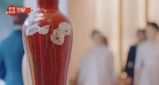 7月27日,国家主席习近平夫人彭丽媛在会见陪同外宾时,欣赏了精美的银花丝、瓷胎竹编、蜀绣、成都漆器等成都特色非遗工艺品。尹利萍设计制作的雕银丝光晕彩虞美人花瓶得到了外宾的称赞。