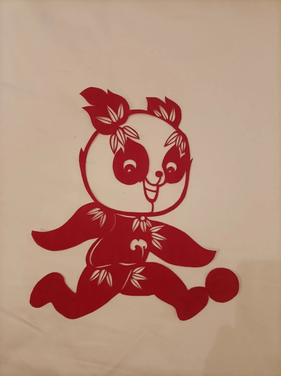 龙玲指着作品说:“为了突出大学生的青春阳光,我在刻画时也将熊猫形象作了微调,比如把头部稍微放大剪圆,然后‘瘦身’,尽量把熊猫的萌态和大学生的形象结合,展现出活力、青春的气息。”