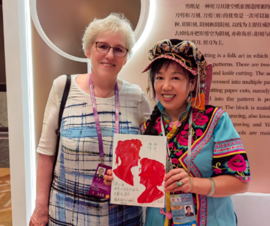 记者了解到,龙玲自幼喜爱绘画、剪纸、丝网花等民间工艺,研习剪纸三十余年,是“四川民间剪纸艺术优秀传承人”,也是“青羊区民间十大艺人”。这次能在家门口的国际赛事中展现剪纸艺术,让龙玲倍感自豪。“作为艺术家,通过一把小小的剪刀剪出时代的记忆,把中国传统文化传递给世界,这是一种无声的传承。”龙玲说。