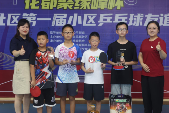 本次乒乓球友谊赛共分为儿童组、青年男子组、青年女子组、老年男子组、老年女子组五个组别,赛事2个半天,共吸引来自花都社区80余名选手齐聚一堂,挥拍角逐。活动现场,儿童组的小朋友生龙活虎、精力十足、愈战愈勇;青年组的刁钻发球,精彩反扣,扑救回击,连连追平,将紧张的赛事氛围持续激发;老年组里平日和蔼的爷爷奶奶们此刻也精神矍铄,身形矫健,几个回合下来也依旧活力满满……最终梁奕晨、刘鸿佑、董奎、覃燕、韦宗宇分别荣获儿童组、青年女子组、青年男子组、老年女子组、老年男子组冠军。