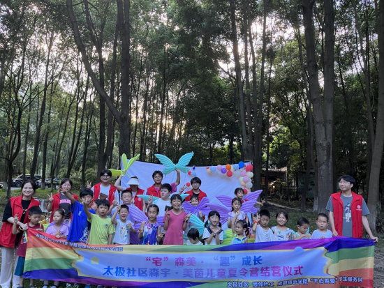 四川新闻网-首屏新闻成都8月1日讯 7月28日,太极社区联合森宇·美茵小区党支部、小区微网格、洁华物业、成师“千心系爱”志愿者团队、居民骨干、爱邻社工等多元力量组织开展的夏令营课程结营仪式圆满举办。为期15天的夏令营让孩子们在志愿者的辅导下完成暑期作业,在手工制作中感受非遗文化的浸润,在自然探索中领略森宇·美茵的美好之处……