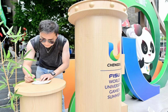 在装置旁,记者还看到了象征“传递”与“祝福”的大运邮筒,一位来自外地的游客写下了对好朋友祝福,“他明年研究生要毕业了,希望可以找到自己心仪的工作。”