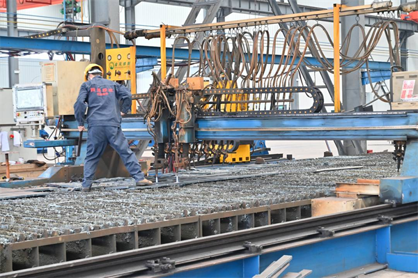 电焊火花四溅,车间工人冒着酷暑,不畏“烤”验,全力赶制订单。在位于内江高新区白马园区的四川绿建杭萧钢构有限公司生产车间,记者看到的是一派热火朝天,繁忙而紧张有序的生产景象。