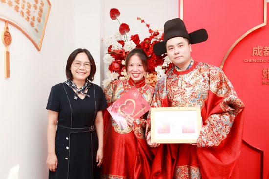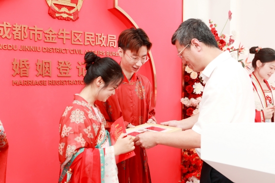 一步一景一文化,喜庆祥和、节俭绿色、弘扬新风,“金‘遇’良缘·相约七夕”活动以人民群众喜闻乐见的形式塑造文明婚俗,在与时俱进中号召更多人了解参与,共同奏响金牛的幸福之声。(图由金牛区民政局提供)