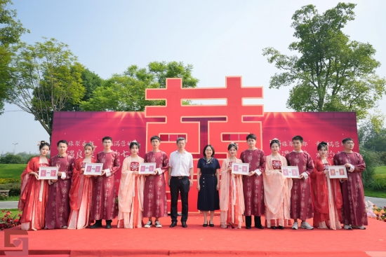 四川新闻网-首屏新闻成都8月22日讯 “千年凤求凰,瑞彩映云翔”。古有以琴代情,靠琴声表达心中情语,今有琴瑟和鸣,演绎金“遇”良缘。8月22日,成都市金牛区第二届“金‘遇’良缘·相约七夕”集体颁证仪式暨七夕婚俗主题活动如约而至,成都市民政局党组成员、副局长申超、金牛区委常委、区总工会主席杨涛,共同见证这场以婚俗文化改革为线,串联集体颁证、婚服展示、汉服游园会等活动,引领婚俗新风尚。