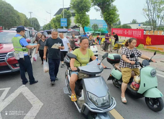 宣传人员利用逢场天人员密集的特点,在舒家渡广场上布置宣传展板,通过发放资料和现场面对面讲解等方式进一步扩大交通安全宣传力度,用通俗易懂的语言宣传交通安全法律法规,以近年来我镇及其周边地区发生的重大交通事故为例,为居民上了一堂生动的“交通安全课”,使居民直观感受到交通违法行为的重大危害性,详细讲解酒醉驾、无证驾驶、超速行驶、骑乘摩托车、电动车不佩戴安全头盔等交通违法行为带来的严重后果,有效提高了居民交通安全防护意识和警觉心理。
