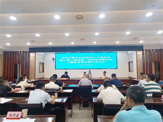会上,传达学习了各级民主党派、无党派人士和党外知识分子、新的社会阶层人士“凝心铸魂强根基、团结奋进新征程”主题教育相关要求,集体学习了《习近平著作选读(第二卷)》中《推动我国经济高质量发展》《加快推进网络强国建设》《为实现民族伟大复兴、推进祖国和平统一而共同奋斗》等篇章内容,并就市新联会第三季度开展“凝心铸魂强根基、团结奋进新征程”主题教育系列工作进行了部署安排,部分常务理事和会员代表结合所学和自身实际,就如何增强组织凝聚力、主题教育自己怎么做和新阶人士如何更好发挥作用等内容分享了学习心得体会。