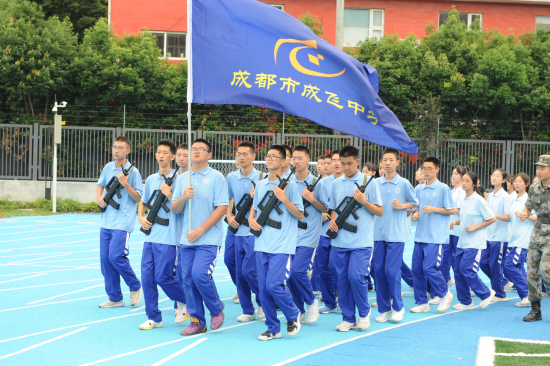 为期7天的高一新生军训顺利结束,石室成飞中学用“航空爱国精神”为学生们鼓舞士气:让“爱国”融进一言一行,从日常行为规范做起,把爱国化为具体的行动。(图由青羊区委宣传部提供)