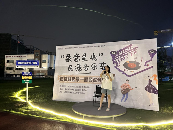 “泉意星光”康泉社区首届民谣音乐节将居民生活融入到音乐场景,进一步提升社区居民的观赏体验感,拉近艺术与居民的距离,让大家感受到了温柔细腻且颇具文艺范儿的康泉。“送到家门口”的高质量演出,居民发自内心的欢迎和溢于言表的喜悦。下一步,康泉社区将继续立足辖区居民的实际需求,持续挖掘康泉社区本地资源,为辖区居民提供更丰富多样的休闲服务。(图由温江区康泉社区提供)