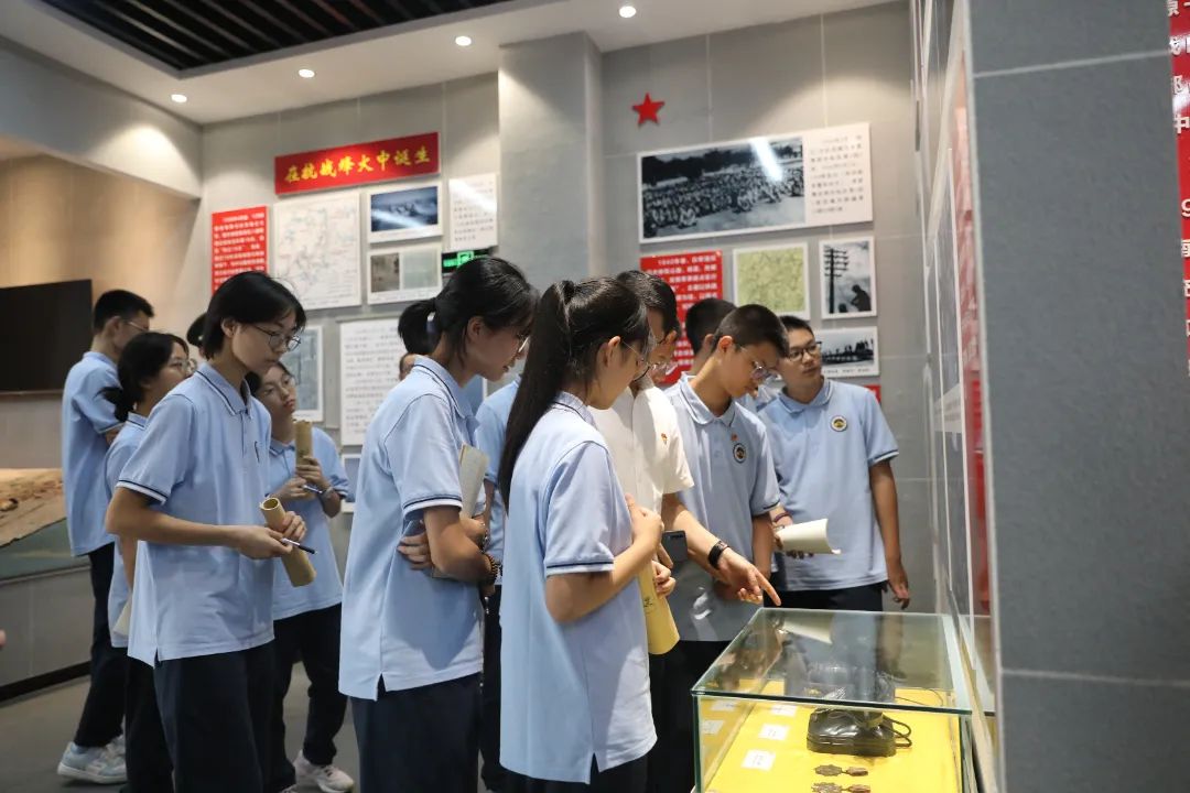 参观军营文化长廊及荣誉厅,军休功臣和学生们在展板前驻足观看,认真聆听战士讲解员介绍部队建立发展的艰辛历程和取得的辉煌荣誉。军休功臣们谈起军旅往事,言语间满是激动与回忆。学生们则被一张张奖状、一块块奖牌代表的集体荣誉所触动,深深地为革命先辈保家卫国、英勇无畏的精神所震撼。