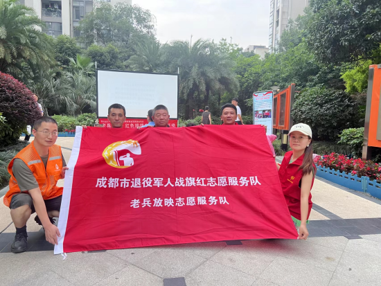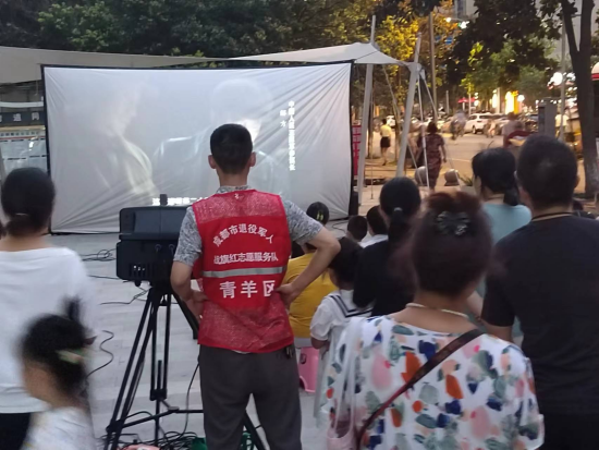 退役不褪色 光影映初心——成都市青羊区退役军人战旗红老兵放映队开展“红色坝坝电影进社区”志愿服务活动