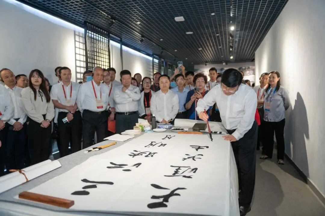 民革四川省委会副主委、民革四川省委会祖统委主任、民革宜宾市委会主委、宜宾市政府副市长周文宇表示,34年的坚持,海峡两岸书画展已成为宜宾民革祖统工作的一大特色品牌,第35届海峡两岸书画展以“盛世入画邀明月、两岸同书庆团圆”为主题,云集台湾、大陆书画作品,旨在以文化认同持续推动宜宾与台湾在更多方面、更宽领域、更深层次开展交流合作,为推动祖国统一事业汇聚更多更大力量。(图由宜宾市委统战部提供)