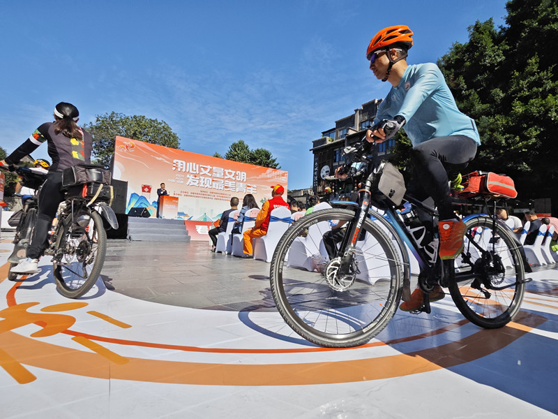 在活动现场的宣传展板上,标注了12个街道的地标性、代表性点位,骑行爱好者们骑上单车围绕街道地标“打卡”。骑行爱好者曾亮说:“我们每周都要组织骑游活动,接下来,我们会按照推荐的线路去骑行打卡,用车轮感受青羊的人文风俗、美食美景、文明风貌。”