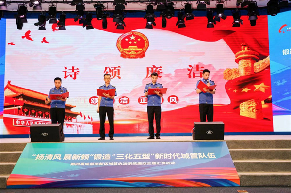 “希望通过此次活动,激励执法队伍真抓实干,增强队伍凝聚力和战斗力,以廉洁务实的工作作风,全面推进廉洁执法建设,打造勤政廉洁的执法铁军,彰显新时代、新担当、新作为中城市管理执法队伍的新面貌、新形象。”成都高新区生态环境和城市管理局相关负责人说。