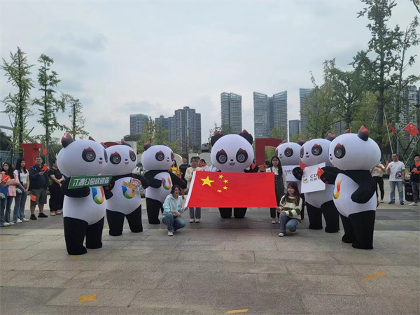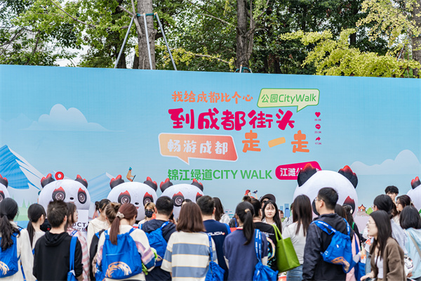 四川新闻网-首屏新闻成都10月3日讯 中秋国庆期间,一场充满运动活力和趣味互动的“健走”在成都大街小巷盛行开来。原来,这是成都文旅集团开展的“我给成都比个心”City walk活动。线上,发起主题活动,以爱心创意轨迹;线下,蓉宝“空降”江滩公园,与大家共唱国歌、共游绿道。融入“显眼包”DIY大比拼,躲猫猫、漫走寻美食等内容,这体育+旅游、体育+社交的风尚开始成为街头一道靓丽风景,掀起全民体育大众共欢的健康热潮。