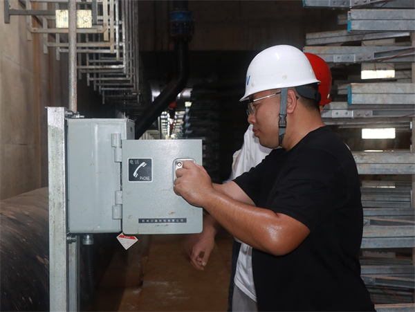 原来,此次香山大道在狂风暴雨中全程畅通,除项目公司落实压细各项应急举措外,项目“黑科技”——监测与排水系统一同形成的封闭降水及水收集功能为项目提供了“治水”良策。地下管廊监测系统能够实时监测水位、流速等参数,并通过对水情数据的分析和计算,为监控室提供预警功能,极大提高了防洪防汛的效率和准确性。同时,在香山大道全线5.3公里范围内,共设有3个抽水泵房,通过抽水管将汇集到蓄水池中的雨水抽到岛上的河道中排出。粗大结实的排水管每小时可抽排水60立方米。经过此次强降水的考验,翠亨新区建设高标准“海绵城市”的目标也在中国十九冶建设者的建设与维护中实现。