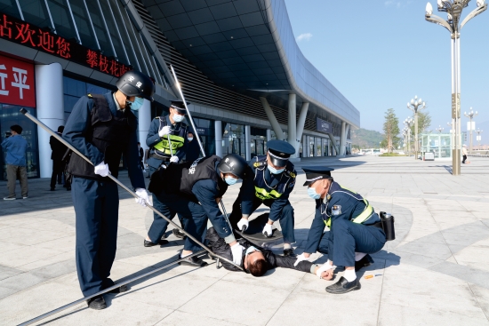 安心,全时全程守护旅客平安出行。火车南站作为人员密集型场所,项目公司始终把安全作为首要工作,在治安、消防等工作中与政府部门紧密协作。2022年度,项目公司、项目部与市公安局、站前派出所联合反恐演练2次,协同市应急管理部门开展消防演练2次,组织开展防洪防汛、电梯困人演练2次。在一次次贴近实际的演练中,项目部全体员工守护安全的能力得到持续锤炼,保障旅客安全出行的能力也不断提升。