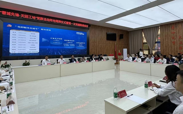 揭牌仪式当天,成都市金牛区召开了第一次党建联席会。会上研究了第三季度活动计划、培育积极分子等党建议题,初步协商并解决了磨盘山提灌站排洪渠堵塞、交子智谷·云锦二期混凝土运输等4个问题,并就金牛区中医院工程正电接入、大北区一组团片区二标段自来水接入等4项议题展开磋商对接、沟通协调。