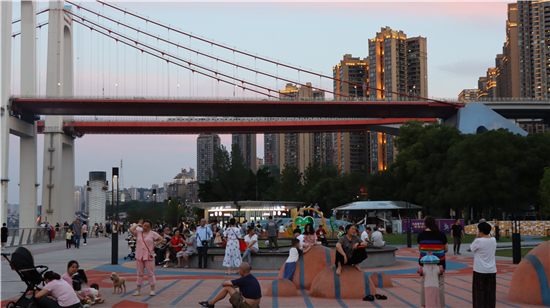 四川新闻网-首屏新闻成都10月13日讯 你见过什么样的重庆?粉妆玉琢的春、苍翠如濯的夏、层林尽染的秋、暗香浮动的冬。长江奔流不息,勾勒出城市发展的日新月异。微风习习,润泽着巴渝山城。傍晚坐在九龙滩广场的长椅上,看着夕阳将鹅公岩大桥的影子慢慢拉长,步道上行人熙熙攘攘,沙池中孩童嬉戏打闹,江面不时传来的汽笛声与人们的欢声笑语一道,为这副洋溢着人间烟火的动人画卷伴奏上优美乐章。