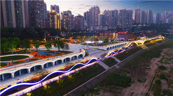 从“江边”到“江景”,一字之差的背后,凝聚着的是十九冶人践行“绿水青山就是金山银山”理念的汗水和匠心,蕴藏着的是十九冶人守护“人民对美好生活向往”的坚守与担当。如今的九龙滩已成为长江重庆段的标志性景点,市民游客漫步在绿道间、奔跑在广场上、休憩在商铺里,在四季轮转的风景里品味着美好生活的无尽滋味,人间烟火溢满江皋!(图由中国十九冶提供 通讯员 彭著陈)