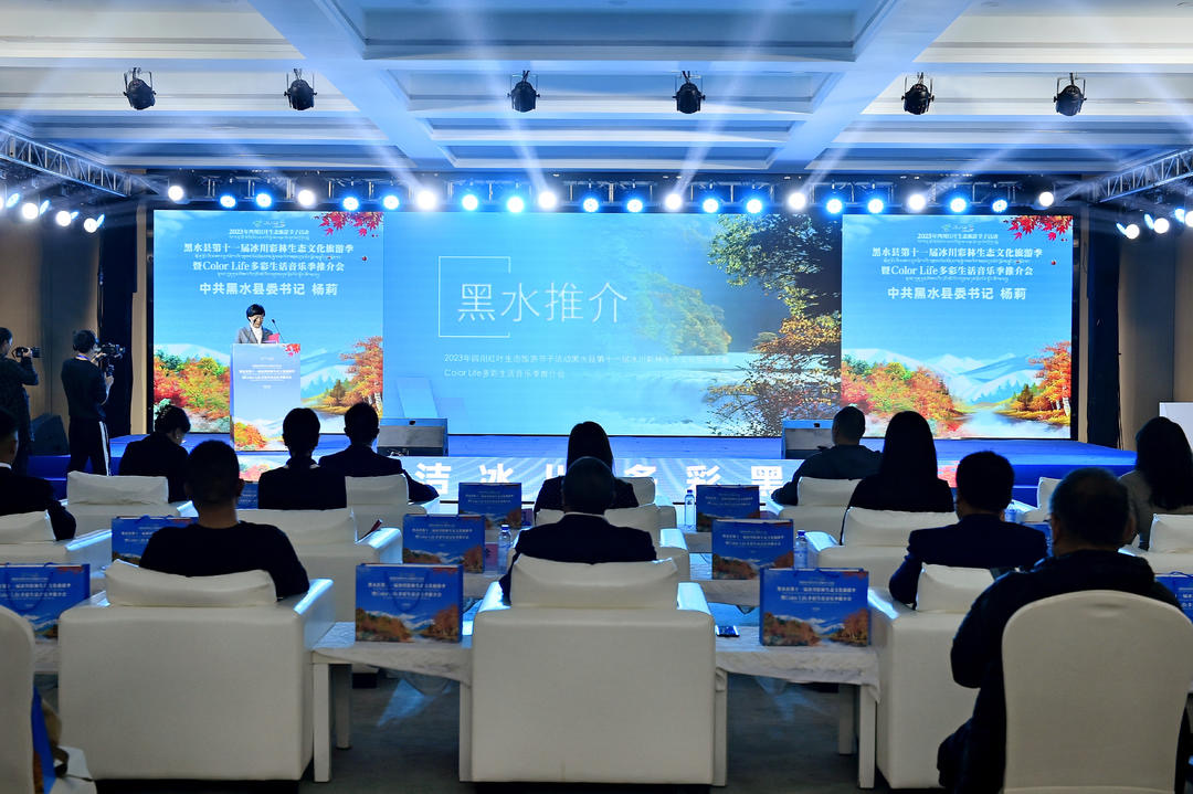 四川新闻网-首屏新闻成都10月16日讯 金风送爽,追寻绚丽多彩秋季,红叶满山,遇见五彩斑斓黑水。10月16日,由阿坝州林业和草原局、阿坝州文化体育和旅游局、黑水县人民政府、达古冰川管理局主办,黑水县林业和草原局、黑水县文化体育和旅游局承办,以“春观山花、夏看繁星、秋赏彩林、冬沐冰雪、四季忆长征”为主题的2023年四川红叶生态旅游节子活动黑水县第十一届冰川彩林生态文化旅游季暨ColorLife多彩生活音乐季推介会在成都举行。