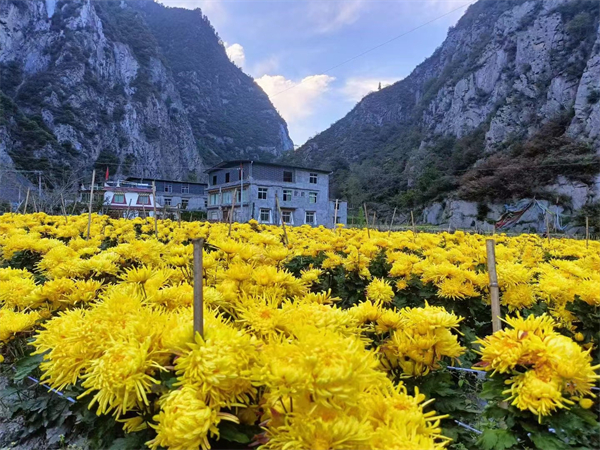 四川新闻网-首屏新闻成都10月20日讯 春种夏长,秋收冬藏,金菊新黄。走进理县下孟乡,一簇簇金丝皇菊随风摇曳,一个个村民穿梭在这片金黄中,一摘一取一番喜,不负一年秋收季。