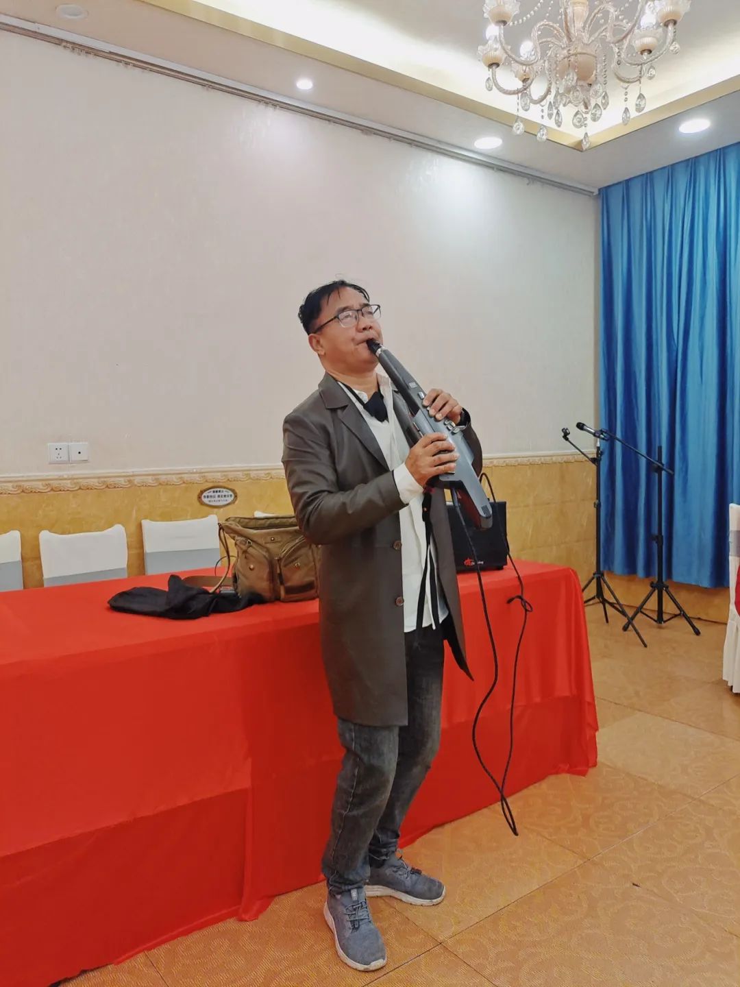 文娱表演环节,新老盟员齐聚一堂,用音乐和语言表达自己内心的喜悦之情和对民盟的美好祝愿。三中支部陈捷声和特邀嘉宾闵莉带来的洞箫排箫二重奏《美丽的神话》,让大家在悠扬的箫声中感受古老的文化魅力;宜宾学院总支部范亚林带来的经典朗诵《水调歌头·明月几时有》,传达了退休盟员乐观旷达的人生态度和对生活的美好祝愿、无限热爱;叙州区总支部张旭彬带来的脱口秀《青年盟员的思想汇报》,以轻松幽默的方式,表达了年轻盟员对社会的关注和对人生的思考;一中支部李宾带来的电吹管吹奏《呼伦贝尔大草原》,带着大家在音乐声中畅游那一片辽阔的草原。表演者们演出热情高涨,现场气氛热烈、掌声不断。