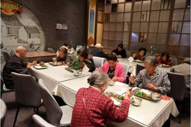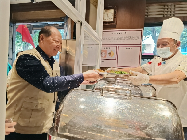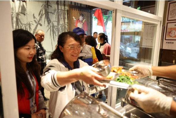 10月23日,正值重阳佳节。不到11点,位于东升街道花月街社区食堂——“花月食坊”就人头攒动,一场“花月暖心 温情重阳”活动正在这里举行。品菊花酒、尝重阳糕、填寿米……丰富的体验活动吸引着众多辖区居民参与,现场热闹不已。活动结束后,众人又有序来到食堂窗口排队取餐,等待品尝可口的饭菜。现场还有不少社区志愿者正帮行动不便的老年人添饭、端餐盘,画面温馨。