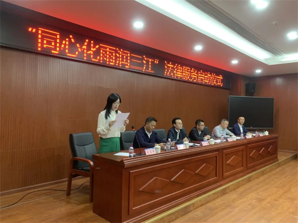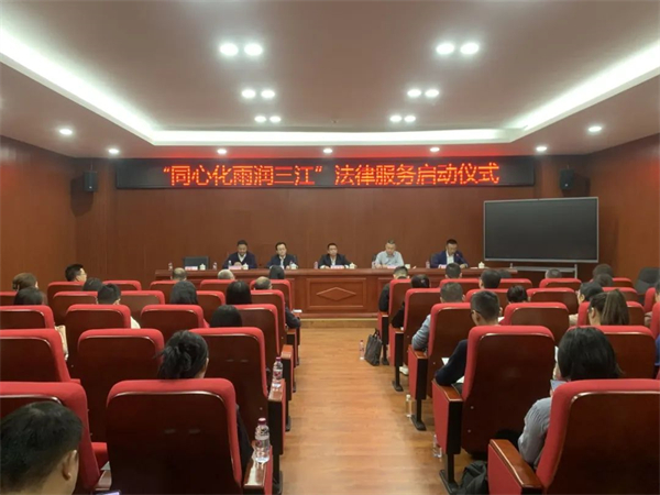 四川新闻网-首屏新闻成都10月25日讯 10月20日下午,“同心化雨润三江”法律服务活动启动仪式在宜宾三江中心法务区新闻发布厅举行。宜宾市委统战部副部长、市民宗局局长杨学东,三江新区党工委委员、二级调研员杨帆,民革宜宾市委会秘书长马椿,宜宾市新联会会长邓骥刚,宜宾市律师协会会长杨赟,及相关同志参加。