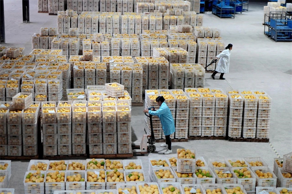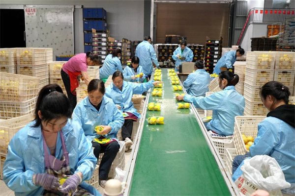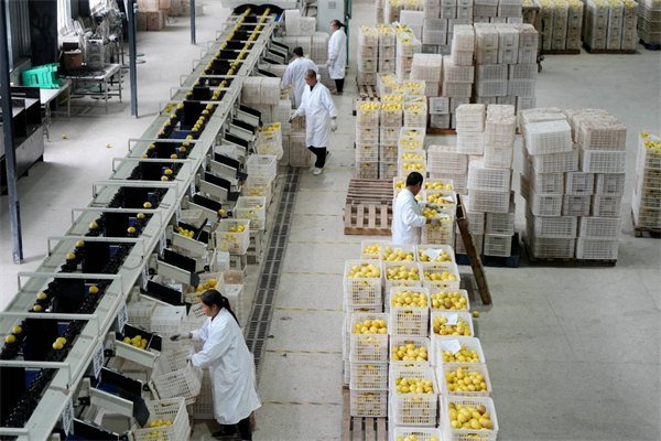采摘下来的柠檬被源源不断地送往基地附近的凯华柠檬加工厂。车间内,全智能水果洗选生产线正在飞速运转,一颗颗鲜柠檬通过自动清洗、筛选后被分类打包装箱,等待运往全国各地。