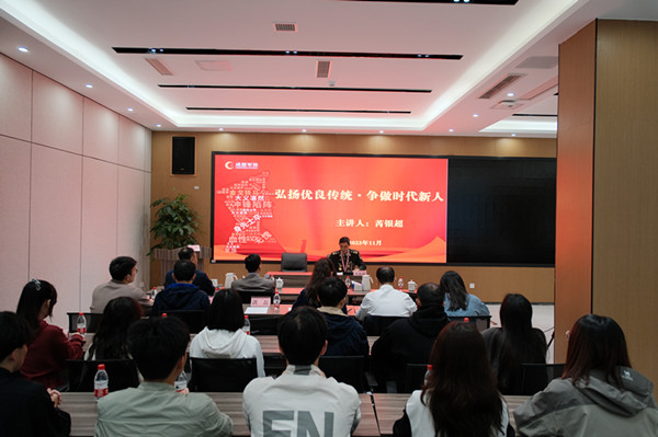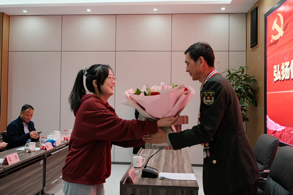 军休功臣芮银超以“弘扬优良传统·争做时代新人”为主题向师生代表进行红色宣讲,他以自身从军经历为引线,生动讲述了自己在部队学到的优良传统以及“邱光华机组”英雄事迹,充分表达了他对部队诚挚的热爱和对英雄战友的深切怀念。宣讲结束后,学生代表向芮银超献上鲜花,表达敬仰之情。同学们纷纷表示,他们将继承和发扬革命精神,树立远大报国志向,努力学习,积极进取,为中华民族伟大复兴贡献自己的力量,成为对国家和社会有用的人才。