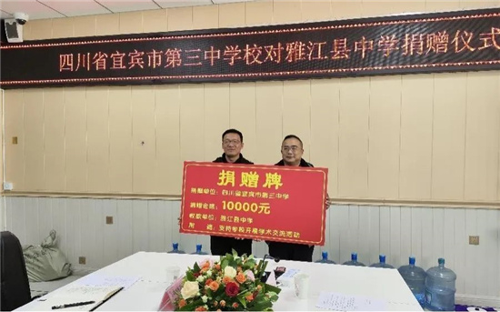 随后,李昊代表宜宾市三中校党委、校行政向雅江县中学捐赠了办学经费。