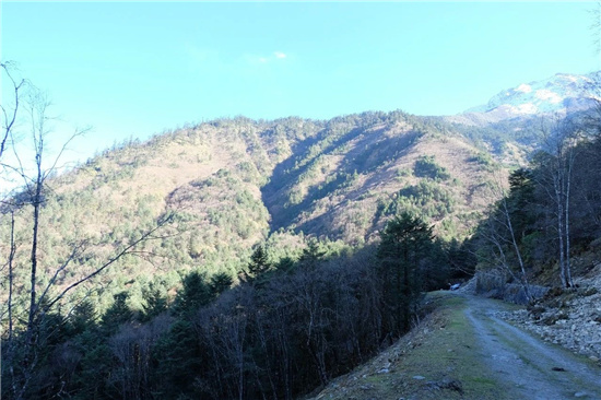 宝兴县城至蜂桶寨乡、硗碛乡,单程60公里。邮路沿着河流往上,海拔逐渐升高,山路蜿蜒,四季风景秀丽。一路上,运气好时能遇到出门散步的大熊猫和猴群,但运气不好时,掉落的飞石横在马路,哪怕经验丰富的老司机也会倒吸一口凉气。