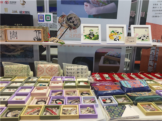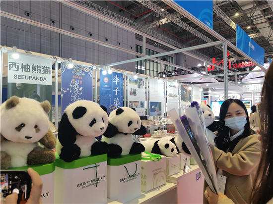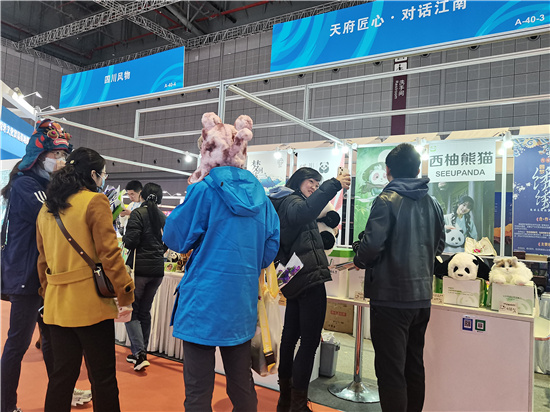 大熊猫是四川最重要的文创IP,仅成都就有熊猫文创企业一千余家。展会现场,各式各样的熊猫吸引了观展人群驻足观看。“西柚熊猫”以中国传统裘皮+创新毛绒内雕两项非遗技艺,高度还原了大熊猫的“触感”、“观感”和“声感”,匠心与科技融合,让“花花”走进千家万户。“莫西熊猫”用料考究做工精良,是迪拜世博会中国馆、荷兰阿尔梅勒世界园艺博览会中国园、成都世界大学生夏季运动会、成都世乒赛运动员等重大活动的伴手礼,充当着友好形象大使角色。除此之外,蜀绣熊猫、蜀锦熊猫、纸艺熊猫、土陶彩绘熊猫等也赚足了观众的眼球。