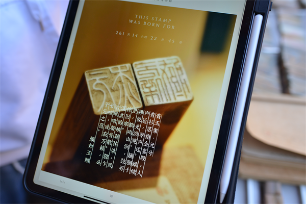 除了保留了传统的雕刻技艺,阿不的苴却石印章还运用起了数字化技术,让这份礼品更特别。“在‘数字记忆博物馆’里,收录这些刻章的数字资料,除了精美的高清影像和配文,上面还显示着这枚印章从‘诞生’到现在的时间,是一份独一无二的伴手礼。”