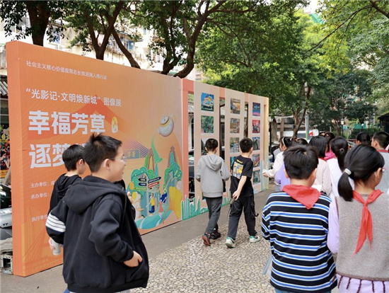 四川新闻网-首屏新闻成都11月20日讯 听宣讲、看展览、写留言,感受“中国式现代化的万千气象”。11月10日下午,“幸福芳草逐梦新时代”文明实践活动在芳草街街道街火烧堰巷举行,辖区居民欢聚一堂,共同感受街区变化,分享幸福生活点滴。