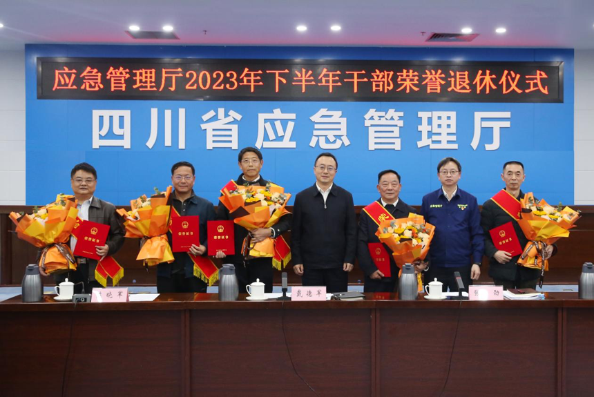 四川新闻网-首屏新闻成都11月25日讯 11月23日,四川省应急管理厅举办干部荣誉退休仪式。应急管理厅党委书记、厅长戴德军出席仪式并讲话,党委委员、政治部主任、机关党委书记张劲主持仪式。