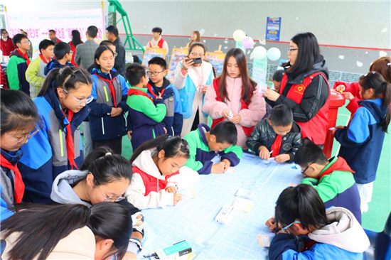 四川新闻网-首屏新闻成都11月27日讯 为关爱学生心理健康,普及心理健康知识,形成正确的心理健康观念,并让学生在游戏体验中发泄情绪、释放压力,11月24日,踏水桥社区联合温江区踏水学校、成都海纳社工开展“以心相会·向阳少年”的青少年心理健康主题游园活动,温江区踏水学校200余名青少年参与活动。