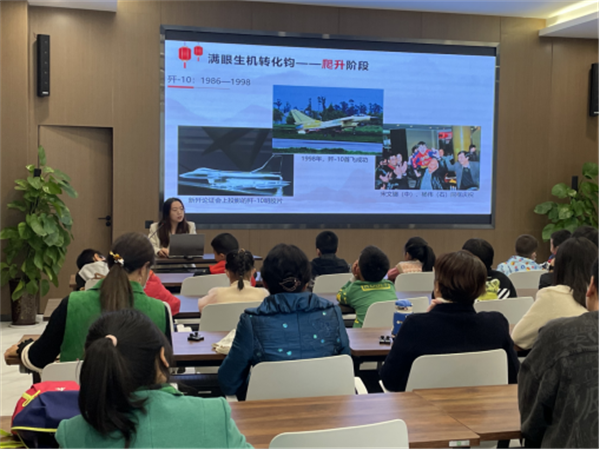 大家一同前往云天阁,参加“航空百年,云端梦圆”主题讲座,本次讲座邀请到青羊区委党校教师谢林芸老师进行讲解,活动以航空为题材、飞机为载体,极具吸引力和感召力。