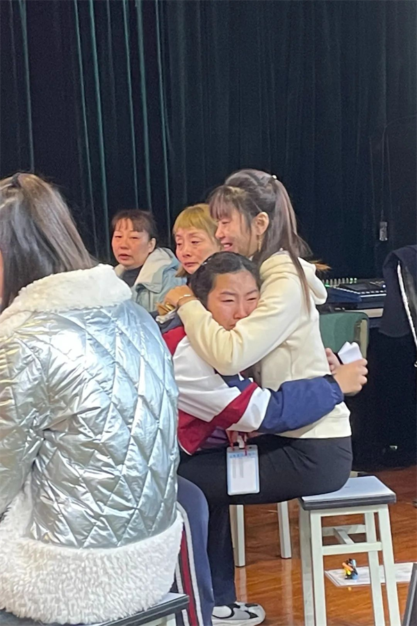 令人最动容的是,活动前夕每位家长都秘密为孩子们写了一封信。这封信里写满了自己长久未言明的爱,也写了对孩子成长的每一份期待。活动尾声,在老师的引导下,孩子们从父母手中接过这封沉甸甸的信,一直掩藏的情绪决堤,热泪也不禁滑落。青春期的孩子们,用稍显稚嫩的声音一遍遍重复着感恩的话语,换来的是温暖的怀抱与“我爱你”的真情回应。