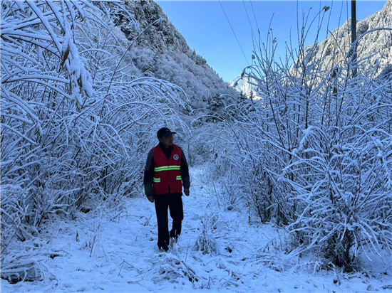“现在我们这里已经进入了森林防火期,我们有6个人每天轮流巡山巡护,从凉台沟的沟口至理小路的项目部,都是我们每天必须巡护的范围,主要就是禁止外来和所有人员带火种进山,包括在林区吸烟”,理县朴头镇梭罗沟村邵军说到。