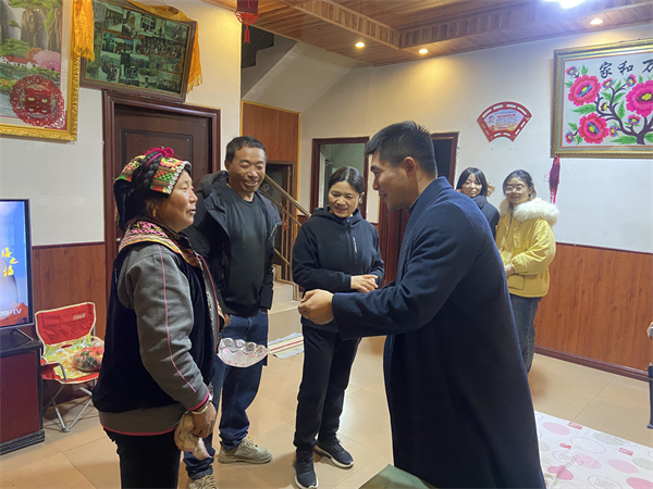 四川新闻网-首屏新闻成都12月5日讯 为切实开展学习贯彻习近平新时代中国特色社会主义思想主题教育,将“我为群众办实事”落到实处,进一步加强与群众的信息沟通,下孟乡嘉康村驻村工作队于今年轮换后,便精心印制了“嘉康村驻村工作队便民联系卡”,在走访过程中分发给嘉康村群众,并介绍便民联系卡的具体内容,以便他们在有困难或需要时,能随时联系工作队为大家排忧解难。