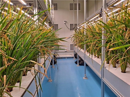 值得一提的是,该中心内科研团队实现了关键技术诸多卡点的突破,特别是植物工厂水稻快速繁育关键技术实现颠覆性突破,在植物工厂中实现矮杆水稻生长周期63天左右收获的重大突破,单层栽培产量每平方米0.98公斤,相当于亩产652公斤。